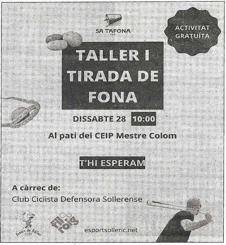 - La seva iniciativa va conduir, a finals dels anys 70, a les primeres demostracions i tirades públiques, a Llubí (Mallorca), que acabarien donant lloc al moviment actual i, posteriorment, a la creació de la Federació Balear de Tir de Fona, moments que també trobareu reflectits àmpliament al FORA VILA, diari digital que sempre ha recolzat aquest esport tant nostrat.